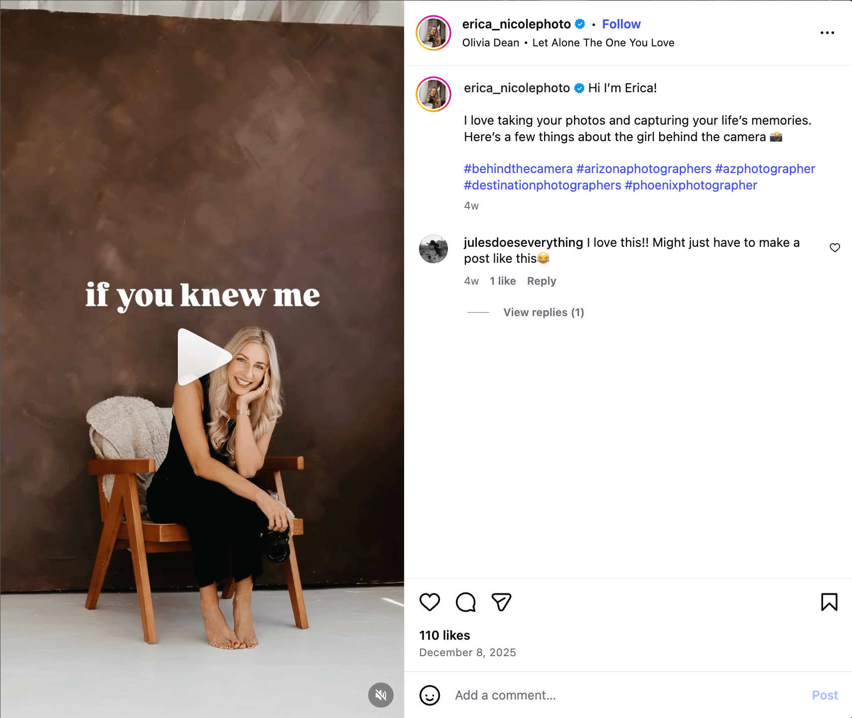 This one blends personal and professional in a way that feels natural (and very scroll-stopping).