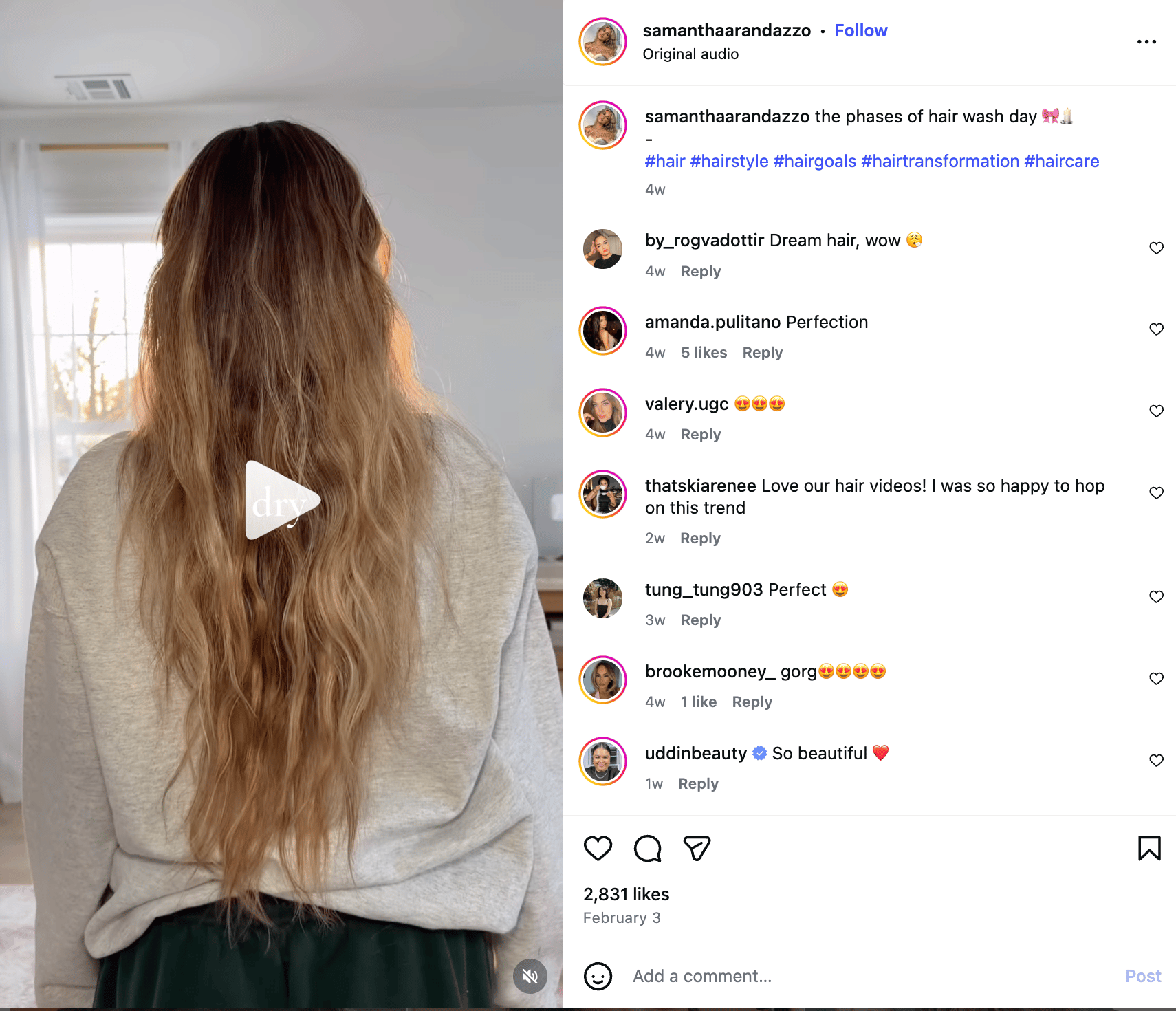 The trend: A Reel that shows the full journey, from the starting point to the final result. The video begins with the “before” stage (often labeled on screen) and moves through the transformation or steps until the finished outcome.